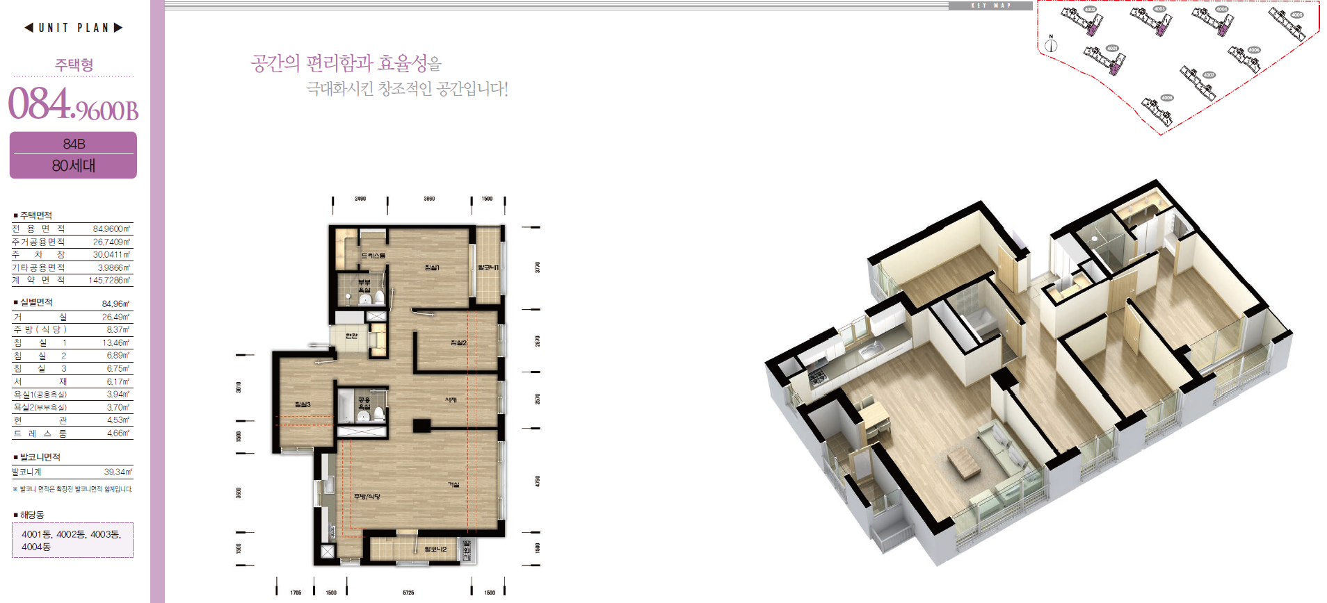 84A타입은 4Bay 판상형 구조로 상당히 대표적이면서도 대중성 있는 구조로 설계되어 있습니다.